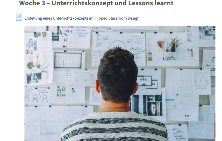 Bei der Erarbeitung unseres Themengebietes haben wir gelernt, dass alle fünf unterschiedliche Ansätze zur Sequenzierung des Lernumfangs haben. Ein wichtiger Schritt war es für uns eine Balance zwischen Unter- und Überforderung der Kursteilnehmer/innen zu finden. Am Beginn versuchten wir alle soviel wie möglich in unseren Kurs zu packen. So sieht man bei unserem Moodle-Kurs, dass die erste Woche sehr fordernd ist. Die Anwendung von Moodle nicht nur aus der Sicht des Anwenders konnten wir gut erfahren, manchmal scheiterten wir auch an den technischen Voraussetzungen, die die Plattform nicht hat.